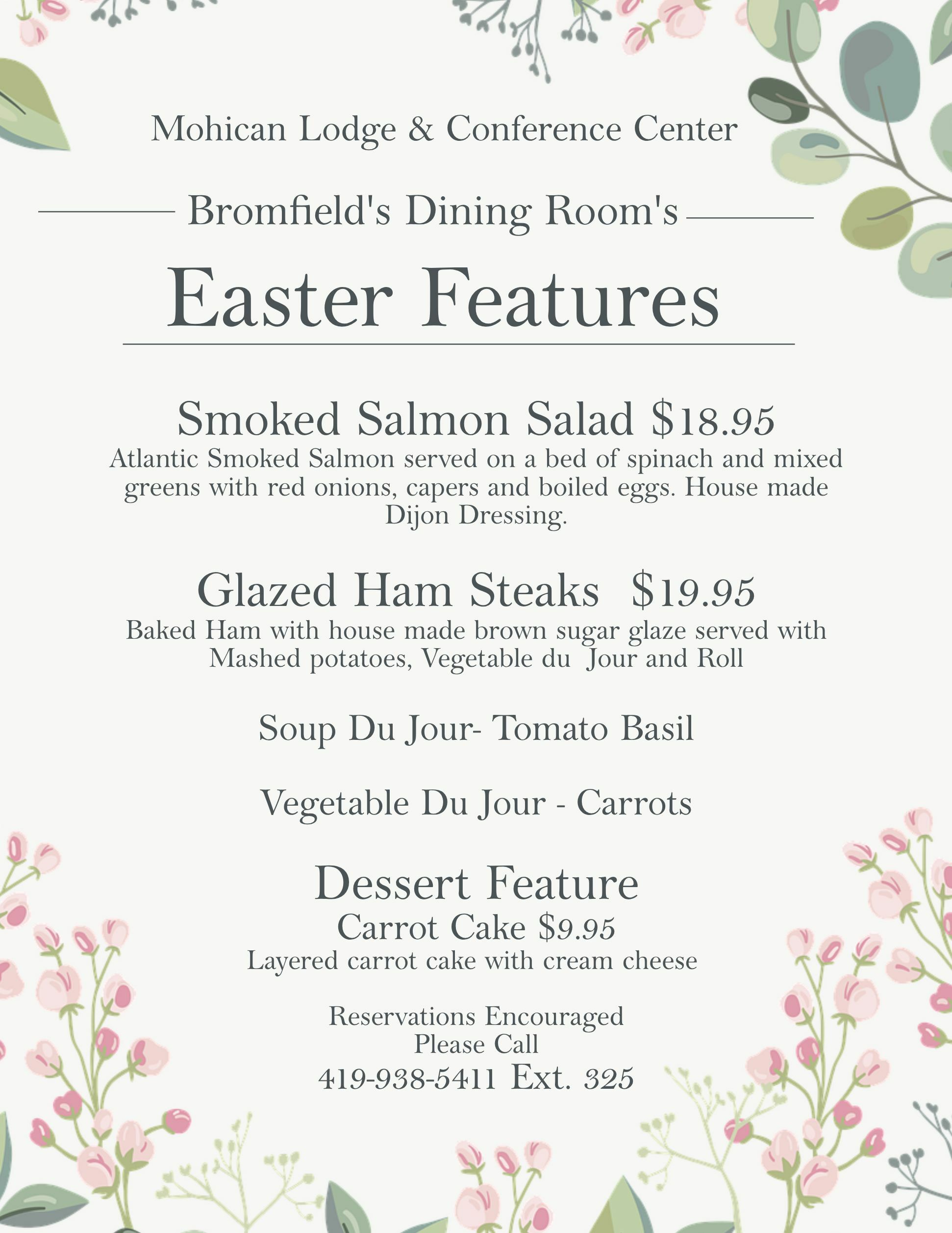 We have created a delicious Easter Sunday specials for you to enjoy with your friends and family in Bromfield's Restaurant.